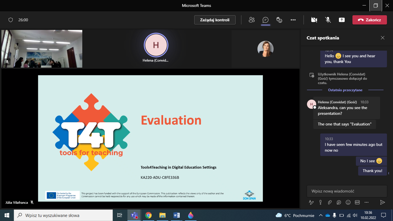 10 lutego odbyło się pierwsze spotkanie z nowego projektu partnerskiego T4T w formule hybrydowej. Partnerzy omówili założenia projektu, zaplanowali zadania 1PR - Opracowanie wytycznych dla lepszego kształtowania efektywnej dynamiki grupy w środowisku nauczania online oraz omówili kwestie rozpowszechniania projektu.